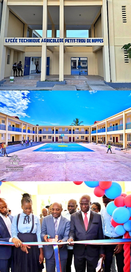 Nesmy Manigat, the Minister of National Education and Vocational Training inaugurated Monday, May 1st, 2023 the first agricultural technical school in Haiti in the town of Petit-Trou-de-Nippes. "Today we are inaugurating the first agricultural technical school in Haiti. It is an institution that will train professionals to work in various fields such as agriculture, fishing, horticulture. This training will also prepare them for the management of agricultural enterprises, the management and maintenance of technical agricultural equipment," said Minister Manigat who explained that the general education network will still exist in this high school, but with the component of the teaching agricultural techniques. The agricultural technical school of Petit-Trou-de-Nippes is built on an area of approximately 1.30 hectares, Manigat indicated that the appropriate arrangements have already been made, in collaboration with the Ministry of Agriculture, to establish on site an agro-school farm where students will experiment while continuing to produce food to put on their plate or sell on the market. "This inauguration carries the dream of Louis-Joseph Janvier coupled with the dream of Jacques Roumain Joseph C. Bernard. It is a dream of an education that offers everyone equal opportunities to succeed through a school based on the promotion of the natural and cultural wealth of the country. It is a school where Haitians learn to better know the gifts of nature to the country, but also to work to give them more value in protecting them; work so that we can get from them a lot of what their families need to survive [...] And that's the possibility of the land, that's the potential of the water, that's the possibility of the sea," continued the Minister while recalling the need for the country to start looking more closely at all the possibilities that a green economy (farming on land) and a blue economy (exploitation of the sea) offer. This agricultural technical school has 18 classrooms, an administrative block, two toilet blocks, a teachers' meeting room, a media library, an infirmary, a kitchen area, a refectory room, a cistern and a field for various sports games. This high school was built to the tune of 82 million gourdes. The Arab Fund for Cooperation for Economic Development provided 77% of the funds. The remaining 33% was provided by the National Education Fund (FNE).