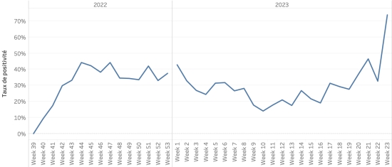 Number of tests carried out: 8.774* +0 in 24 hours, previous +80 in 24 hours Positivity rate: 35.05%, previous 35.05% * no Lab update for 2 days Evolution of the positivity rate: