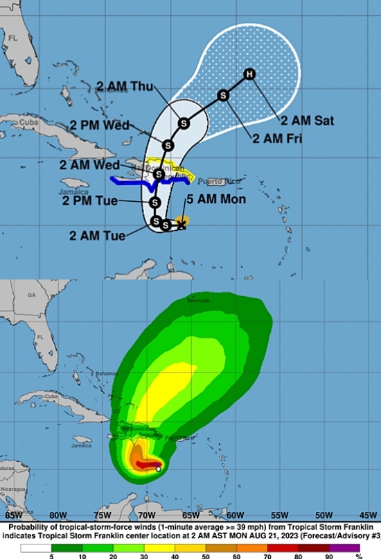 Haiti - FLASH : Storm Franklin will affect Haiti 21/08/2023 06:08:41
