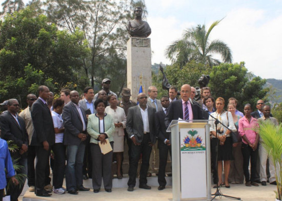 The President Michel Martelly, went on Friday, November 11, on the Place St-Pierre to Petion-Ville to see progress made in the project 16/6, aiming the relocation in 16 neighborhoods, of the people living in six camps of the metropolitan area. Over 500 families who occupied this public space, have been relocated, most of them in new homes. "The Place Saint Pierre is no longer an IDPs, it regained its role of public Place" declared the President Martelly". The Head of State, who spoke in the presence of Mayor of Petionville, Claire Lydie Parent, of the Engineer Clement Bélizaire, of Director of Project 16/6, of Mario Andrésol, the Director General of the National Police of Haiti (PNH) and representatives of international agencies USAID and IOM, thanked the various stakeholders who contributed to rehouse the displaced of the Place St-Pierre. "...Today is a great day for the town of Petion ville in particular, a victory for the people, a victory for the town of Petion ville, a victory for those who were in the camps of the Place Saint-Pierre. We all know that the people who are in the camps are a concern, it is a problem for us who are at the head of the State and every day we think to see how we can move faster, but in good conditions.