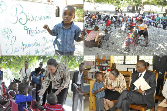 Sophia Martelly, the First Lady of the Republic of Haiti, spoke in favor of a better support for disabled people in Haiti, during a visit this Wednesday, to the project Zanmi Beni of Zanmi Lasante, located in Santo 18, in the town of Croix-des-Bouquets. This meeting of Ms. Martelly withe the responsibles of Zanmi Lasante, conducted in preparation for the International Day of Disabled Persons on December 3, comes strengthen an organization whose mission is to create an environment that promotes the integral development of children. A project that demonstrates the urgent need for a lifelong commitment in favor of children with disabilities.