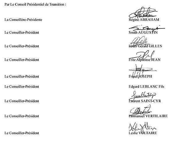 The Presidential Transitional Council appointed by decree Citizen Alix Didier Fils-Aimé as Prime Minister to lead the Government according to a decree appearing in the official journal Le Moniteur, special issue #57, signed by 8 of the 9 members of the Council including 2 non-voting observer members. The signature of Presidential Advisor Edgard Leblanc Fils does not appear at the bottom of this decree. "The appointment decree has already been published in the National Press, and Didier Fils-Aimé should take office this Monday. The formation of the government is scheduled for Tuesday, November 12." Note that this announcement by the CPT was made on Sunday, November 10, 2024, while the decree is dated November 11, 2024 and was not yet published... DECREE : "Having regard to the Decree of May 17, 2005 revising the General Status of the Civil Service; Having regard to the Decree of 10 April 2024 establishing the Presidential Transitional Council; Having regard to the Decree of 23 May 2024 determining the organisation and operating mode of the Presidential Transitional Council; Having regard to the Order of 16 April 2024 appointing the members of the Presidential Transitional Council; Considering that, by resolution dated 8 November 2024, the Presidential Transitional Council has chosen, by consensus, citizen Didier Fils-Aimé as Prime Minister; Considering that it is appropriate to appoint the Prime Minister; ORDER Article 1.- The Citizen Alix Didier FILS-AIMÉ is appointed Prime Minister. Article 2.- A copy of this Order will be given to the person concerned. Article 3.- This Order will be published and executed for the purposes of law. Given at the National Palace, in Port-au-Prince, on November 8, 2024, Year 221 of Independence. By The Presidential Transitional Council: Councillor-President Régine ABRAHAM Councillor-President Smith AUGUSTIN Councillor-President Lois Gérald GILLES Councillor-President Fritz Alphonse JEAN Councillor-President Frinel JOSEPH Councillor-President Edgard LEBLANC Fils (unsigned) Councillor-President Laurent SAINT-CYR Councillor-President Emmanuel VERTILAIRE Councillor-President Leslie VOLTAIRE »
