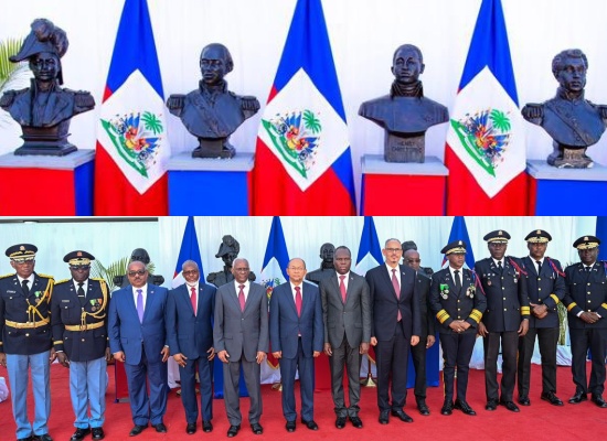 Thursday, January 2nd, 2024 at the Villa d'Accueil, as part of the commemoration of Ancestors' Day, the ceremony marked by solemnity was a moment of reflection on the legacy of the heroes of 1804 and on the importance of preserving the ideals of independence and sovereignty that they bequeathed to us. Prime Minister Alix Didier Fils-Aimé, who accompanied the members of the Presidential Transitional Council (CPT), in the presence of the highest authorities of the State, Ministers, Directors General, Commander-in-Chief of the Armed Forces of Haiti (FAd'H) and the Director General of the National Police of Haiti (PNH), recalled the profound significance of this day, a symbol of our common struggle for freedom and national dignity. He urged citizens to draw on the example of courage and resilience of their ancestors to face current challenges, particularly those related to insecurity and instability. “This day is a call to reconnect with our roots, to strengthen our unity and to build a strong and prosperous Haiti,” he said. He also stressed the dual mission of this commemoration: to honor the past and renew our commitment to the future. “Celebrating Forefathers’ Day is to claim the legacy of justice and freedom left by the nation’s founders, while working to consolidate a future worthy of their sacrifices.”