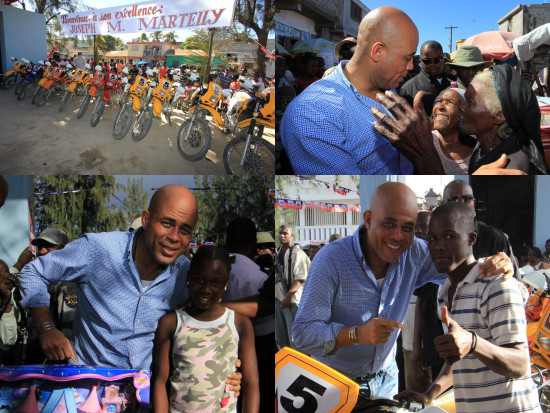 Michel Martelly, the President of the Republic, traveled this Saturday, December 17, 2011 in Port de Paix, in the Northwest, where he was warmly welcomed by the Departmental Delegate, Mr. Emmanuel Remy, the Secretary General of Ministers, Mr. Enex Jean-Charles, the Mayor Salvador Guillet as well as the general population. Once off the helicopter, the Head of State clearly explained to journalists that his visit in the capital of this department, during the holiday season, testified once again his attachment to the Haitian people. The President Martelly then walked towards the city center where he paid a visit to merchants of the Public Market of the street of Quai. The joy and satisfaction were visible on the face of the latter. After going through several streets, the President of the Republic visited the Diocese of Port-de-Paix, where he met with Mgr Pierre Antoine Paulo. In the public square, where thousands of citizens had gathered, the Head of State has made a distribution of gifts including motorcycles and toys. On the occasion of a dinner given in his honor at the church hall, the President of the Republic has asked local authorities to forward the demands of the population of the Northwest to the central government for necessary follow-up. "No more rhetoric. We must now take concrete action", insisted the President Martelly, encouraging the responsibles of Port de Paix to effectively play their part in the development of the region where infrastructure and sanitation works are in progress.