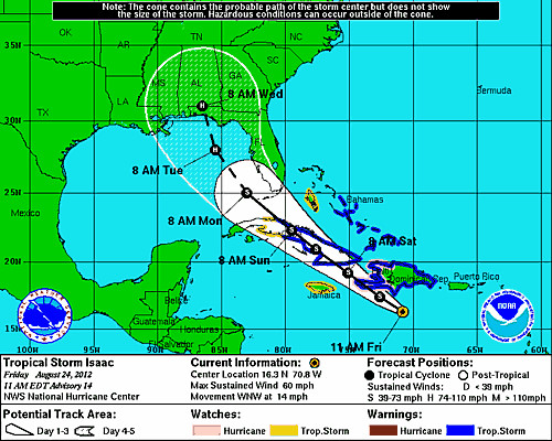 Haiti - Environment : ISAAC, moves toward Haiti 24/08/2012 11:28:27