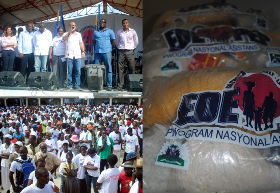 Saturday, the Prime Minister Laurent Lamothe went to La Plaine du Nord, where he launched the new social program "Ede Pep", on that occasion he distributed 2.500 baskets of solidarity to the inhabitants of La Plaine du Nord. During his visit he took the opportunity to meet the Mayor of the Plaine du Nord, Cride Joseph and the Deputies Etienne and Jean-Baptiste. "[...] We came today with a large part of the Government in the Plaine du Nord, this demonstrates the importance of the Plaine du Nord for us, we came to see what problems you have, sit together in respect and dignity, and look at what we can do for the Plaine du Nord [...] we know that things are not easy, that is why we have chosen to launch the program 'Ede Pep' a basket of solidarity [...] I heard the problems that there are, I heard the problems of road, the 3 kilometers of road, the Government is committed to do them for you. You have 59 cattle that were stolen [500 since 2010] [...] I asked the Chief of Police, all police officers, all authorities to take all steps to ensure that theft of livestock stops, and to make all the arrangements immediately. We today, 2,500 people tha twill receive a basket of solidarity, and it is only a beginning, it is a symbolic gesture, because we will go in all departments in all cities of the country to help people, which is in misery, seeking a better life, and the Government must do what it can to bring this better life. [...] We'll get back with the program 'Ti-Mamman Cheri', which for its part will benefit more than 2.500 moms in the Plaine du Nord, the Deputy of the zone made the request and we will give it [...] but I must tell you something, in the same way that it is not easy for you, it is not easy for the Government. The Government has come up with very little money, but we will take in this small money that we have to share it with you who are in the necessity [...] I also want to let you know that the President Martelly works day and night to be able to provide solutions and change in the city, thus, in addition of 3km road, there are electricity problems in the area and we will install 30 solar streetlights across the Plaine du Nord [...]"