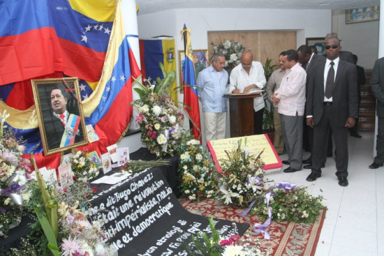 The book of condolences will be sent to Venezuela and placed alongside many other testimonies in memory of "Comandante". See also : https://www.haitilibre.com/en/search.php?q=Chavez&d=0 S/ HaitiLibre