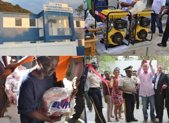 On Saturday, President Michel Martelly, on tour in Côtes-de-Fer, inaugurated among others, a police station funded by the Government of Canada. The ceremony took place in the presence of Godson Orelus, Director General of the National Police of Haiti (PNH), the Canadian Ambassador to Haiti, Henri Paul Normandin and some members of the Government and Parliament. Subsequently, the Head of State inaugurated a newly constructed bridge on the river Côtes-de-Fer, which is the gateway to the city, beginning of the Boulevard Gérard Martelly, father's name of the President of the Republic. The President Martelly also visited that same day, the National School of Côtes-de-Fer where the Fund of Economic and Social Assistance (FAES) conducted a distribution of food kit as part of program "Ede Pèp". During this meeting with several hundred cotiferois, the Head of State emphasized the need to achieve food self-sufficiency, one of the basic conditions of real development of the country. The President, accompanied of Jacques Thomas, Minister of Agriculture, Dr. Felix Mimose, Minister Delegate to the Prime Minister responsible for promoting the peasantry, Charles Jean-Jacques, Minister of Social Affairs and Senator Edwin Zenny went to Gris-Gris, one of the communal sections of Côtes-de-Fer, where he had a successful meeting with farmers of the area. An opportunity for the Head of State, to deliver to the farmers' associations a lot of agricultural material and 32 pumps for watering a thousand hectare of land. FAES took the opportunity to also make other distribution of food kits, still within the framework of the program "Ede Pèp".