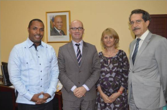 The Ambassador of France accredited to Port-au-Prince, Patrick Nicoloso at the head of a delegation composed of Thierry Fraysse, Head of Mission of the International Adoption at the Ministry of Foreign Affairs in Paris and Dr. Frédérique Delatour, Health Advisor for the Mission of the International Adoption paid a visit to Charles Jean Jacques, the Minister of Social Affairs and Labour (MAST). The Minister and the Ambassador held discussions on topics of prime importance include: the implementation of the new law on adoption in accordance with the Vienna Convention adopted in 2012 by Haiti ; support of the French Cooperation to strengthen the Institute of Social Welfare (IBESR) ; the Programme of Assistance to Children of MAST ; the perspective of creation of a multidisciplinary cell to IBESR ; the prioritization by the MAST of problem of street children and the fight against extreme poverty in close relation with the Government's social policy.