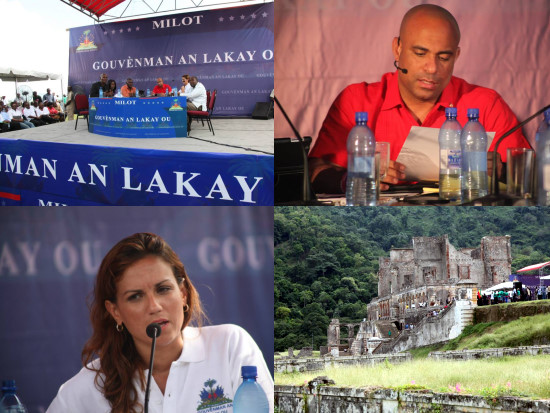 Saturday in Milot, in the heart of Sans Souci Palace, thousands of citizens have welcomed the Prime Minister, Laurent Lamothe and members of the Government at the 3rd exit of program "Gouvènman an lakay ou". This space for dialogue between the Martelly administration and local people, took place around of thematics including : tourism, infrastructure, social programs and education. In the presence of local authorities as well as many parliamentarians, including Deputy Jacques Stevenson Thimoléon, President in the Lower House, of the majority pro-government political bloc "Parliamentarians for Stability and Progress" (PSP), of deputiesKenston Jean-Baptiste, Job Jolicoeur, Ronald Larèche and Marie Jossie Étienne ; the citizens of Milot exchanged with the authorities on the achievements of the government to improve their living conditions. Because of the historical significance of the region, the focus was on the renovation of the Citadelle La Ferrière of King Henri Christophe, an architectural masterpiece, that the Lamothe government intends to protect and pass on to future generations, recalling that in Milot, the government started the construction of reception facilities to showcase to the maximum the tourism potential of the area and rehabilitate the access roads. The Palace Sans Souci, priceless heritage, is also part of the government's priorities and will soon be renovated. Officials of the Institute for the Protection of National Heritage (ISPAN) estimate between 4 to 5 million dollars the amount needed to make this work. The Prime Minister announced that the government is committed to invest $1 million for the completion of the first phase. The Head of Government stressed that many studies are underway throughout the region : the Baie de l’Acul was equipped with a wharf and reception kiosks and for the artisans were erected in Ouanaminthe and Choiseul, in order to support the efforts of artisans and other professionals in the tourism sector. Laurant Lamothe also announced that the rehabilitation of the village of Labadie, will be launched in 2014 and by next year, with funding from the World Bank, the construction of a two-lane road linking the Cap-Haitien and Labadee beach, one of the main attractions of the department. Adding that many stretches of road, bridges and structures will also be constructed and/or rehabilitated, noting that the road from the Baie de l’Acul and Baryè batan, 22 km long, is under construction and will open in mid 2014. The Prime Minister said in that the scuppers in Limbé, the bridges thrown into the mouth of the river from the haut du Cap re mostly funded from the Treasury. The Prime Minister, who made education a priority, according to the vision of President Martelly, took the opportunity to announce the award, on contest, of 15 scholarships in friendly countries, for the youth of the town of Milot .